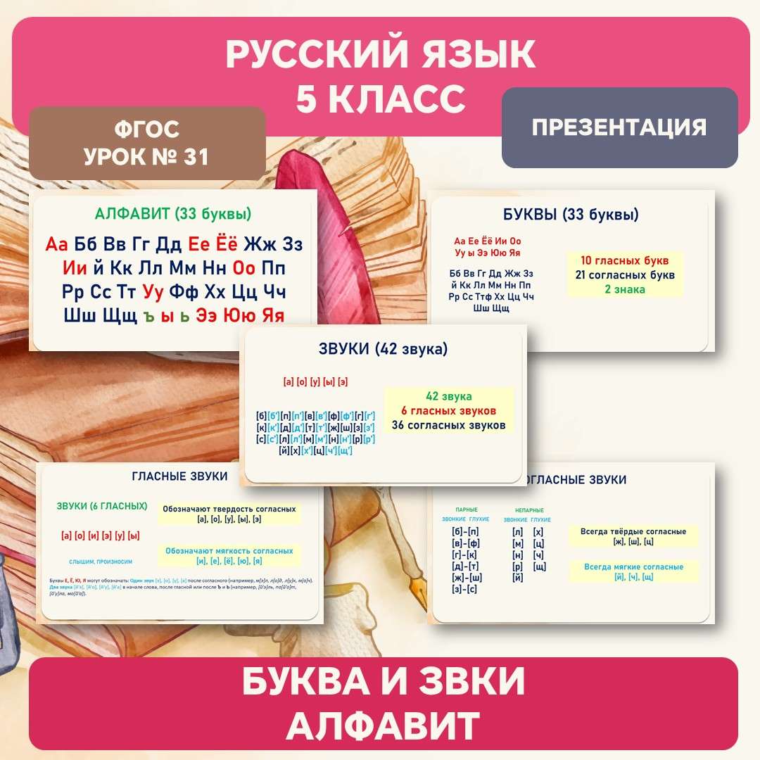 Презентация. «Буква и звук. Алфавит». Русский язык 5 класс. Урок №31.