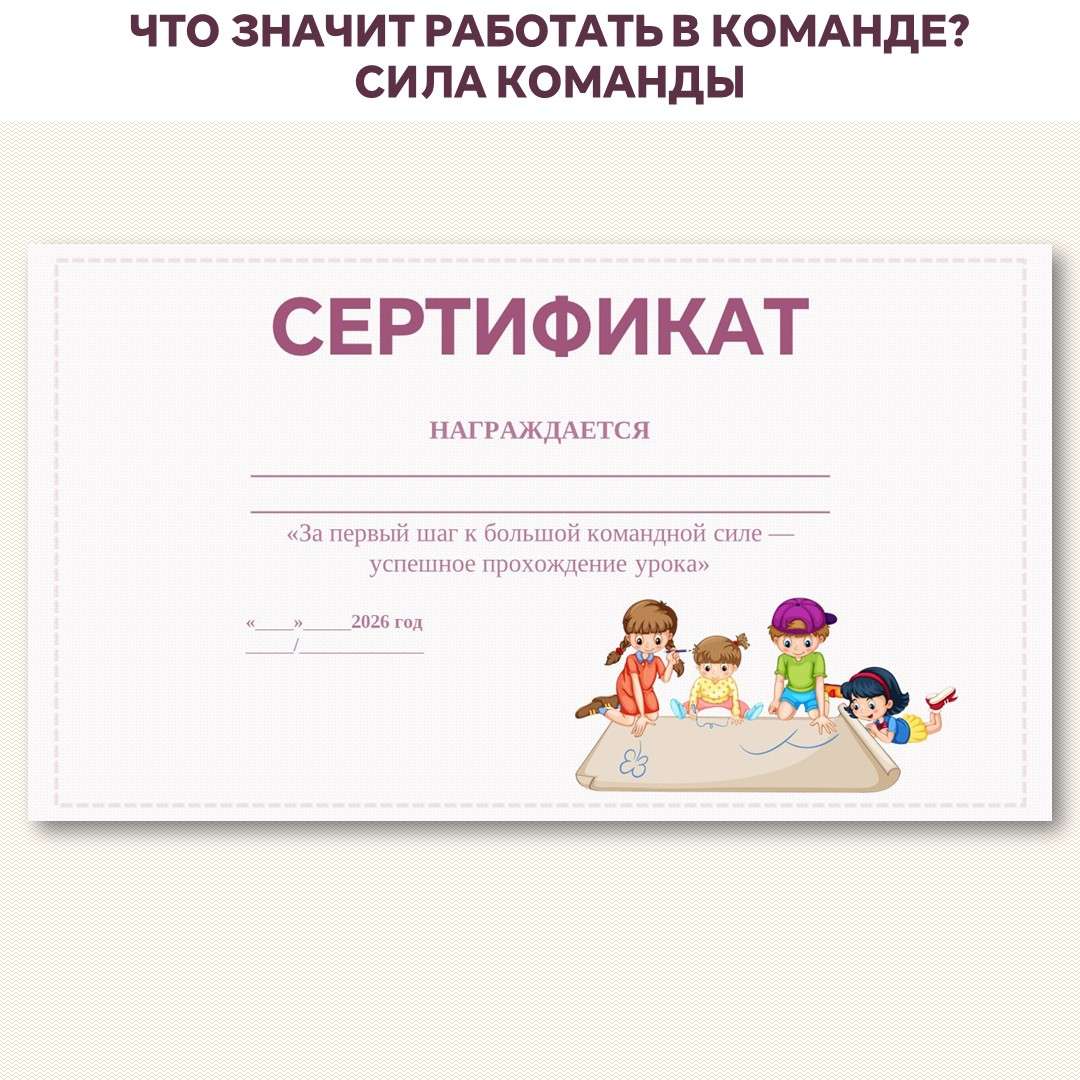 «Что значит работать в команде? Сила команды». Презентация к урокам разговоры о важном. В конце урока есть возможность выдать Сертификат.