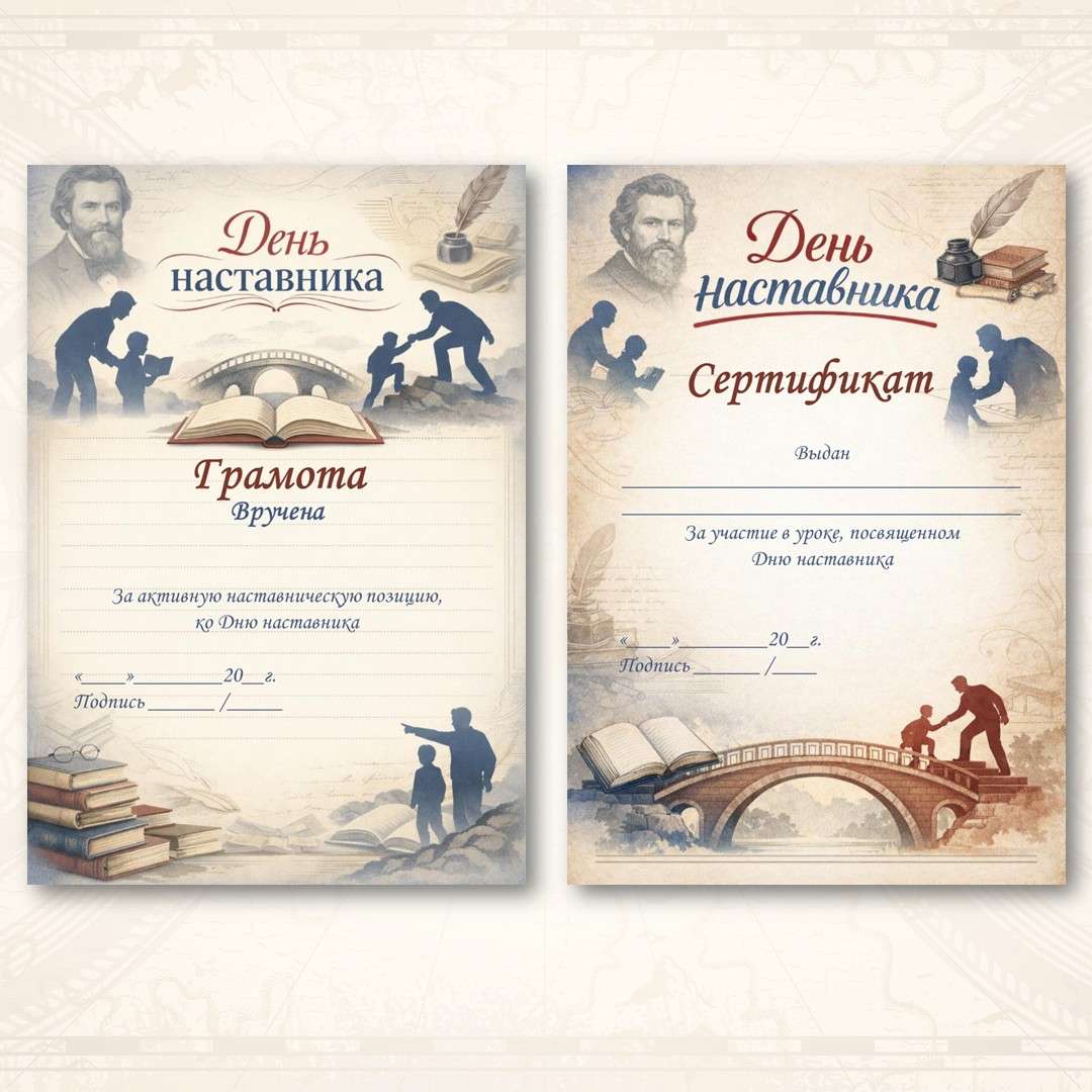 - Сертификат — За участие в уроке, посвященному Дню наставника