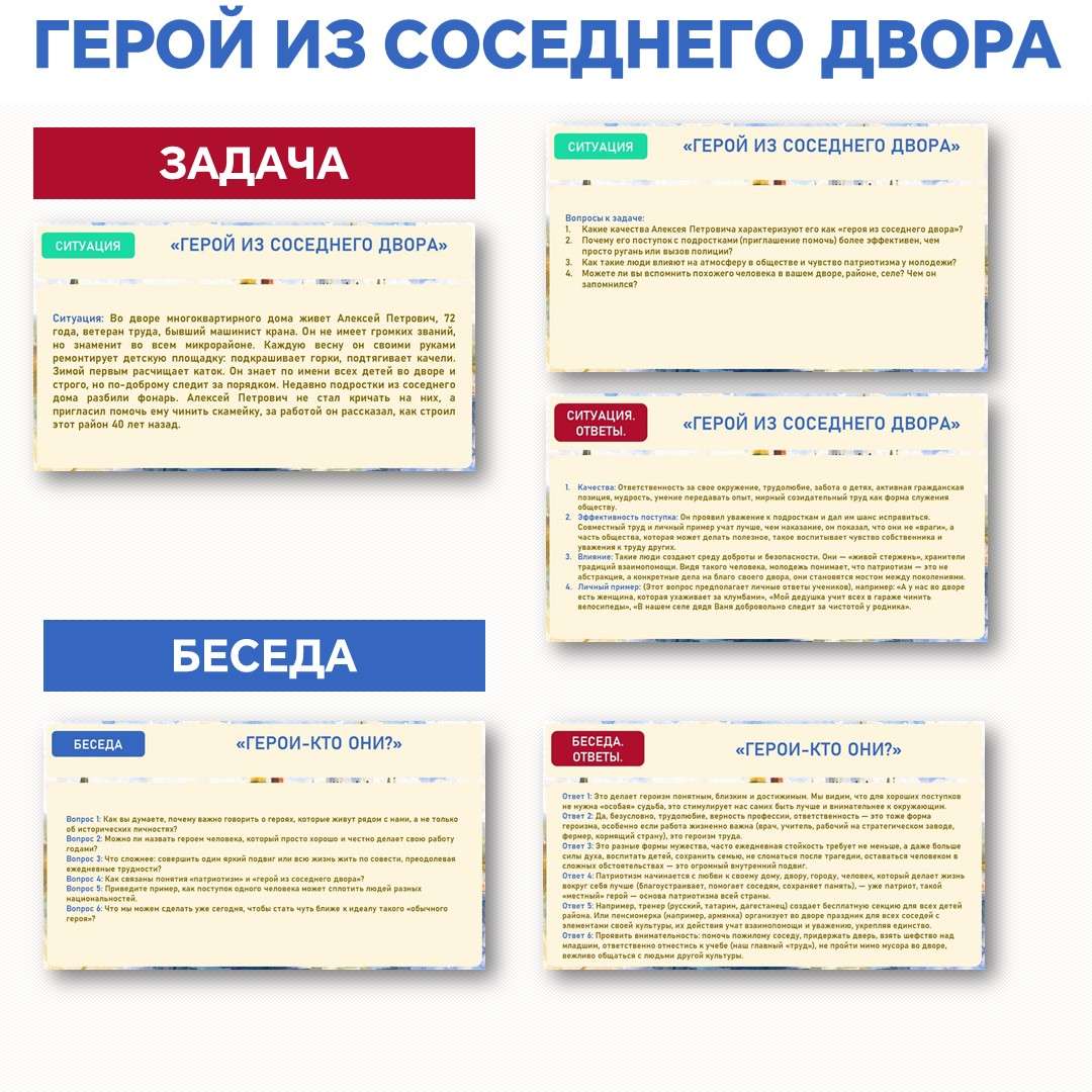 «Герой из соседнего двора». Региональный урок ко Дню защитника Отечества. Разговоры о важном. (16 февраля). Урок включает дискуссию на ключевые темы: что такое героизм сегодня, какими качествами обладает настоящий герой, кто является героем нашего времени и как проявляется единство народов России. Интерактивная часть содержит ситуационную задачу для анализа и беседу, а по итогам участники получают именной сертификат и памятные тематические закладки. Идеальный комплект для проведения регионального патриотического классного часа.