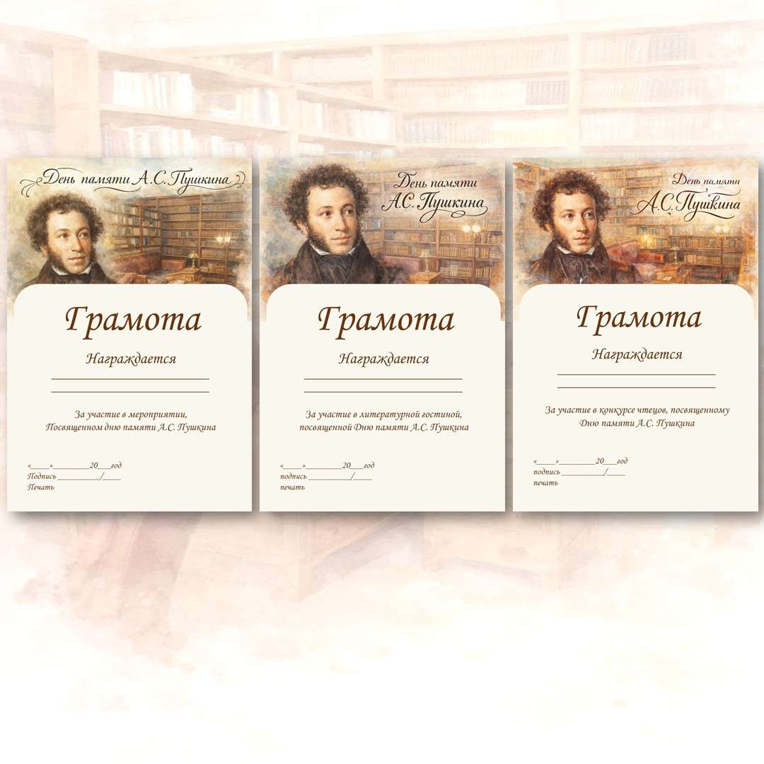 Оформление «День памяти А. С. Пушкина» (10 февраля). В набор входят яркие календари формата А4 (3 шт.), уютные настольные календари-домики (2 шт.), литературные закладки (2 шт.) и портреты поэта (3 шт.) для создания атмосферы. Наградите участников мероприятий грамотами с тремя разными номинациями и поощрите интерес к творчеству поэта оригинальными Пушкинскими абонементами четырех видов. Идеальный набор для библиотек, школ и культурных центров.