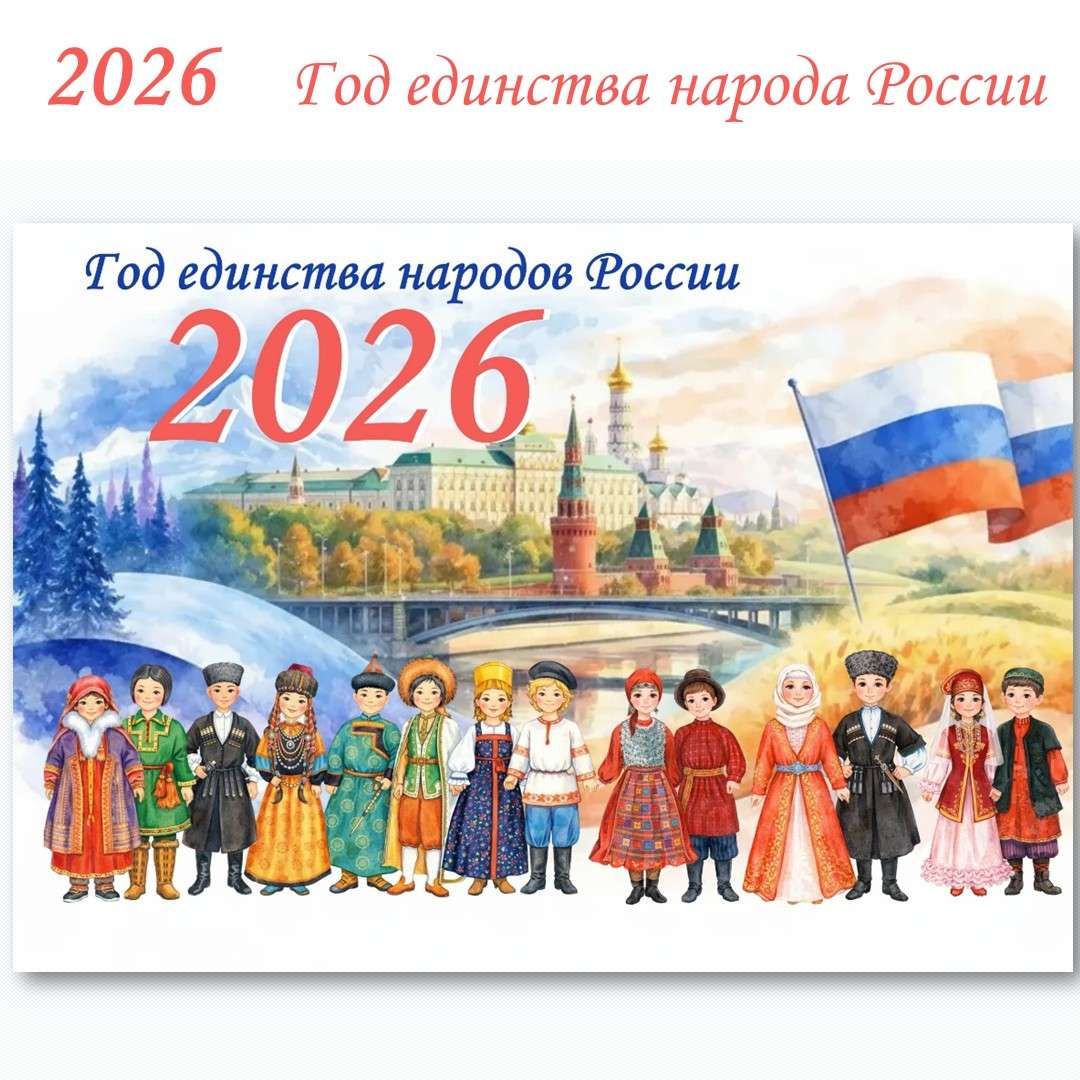 Оформление «Год единства народов России» (2026 год). Набор включает 2 баннера А2 (4хА4) и 4 плаката А3 (2хА4) для оформления школы, офиса или библиотеки. Готовые макеты для печати на принтере — создайте атмосферу праздника и единства.