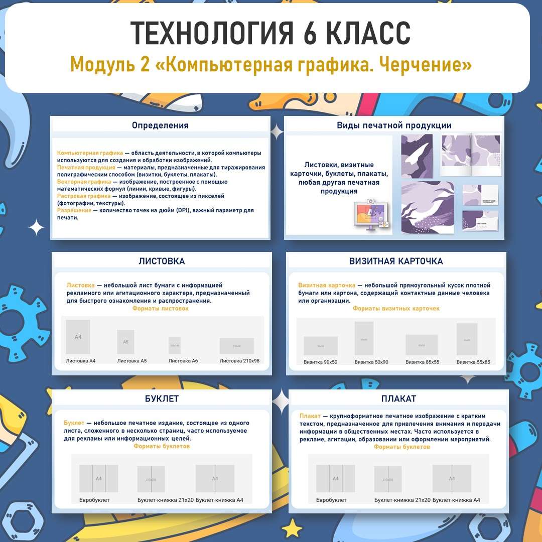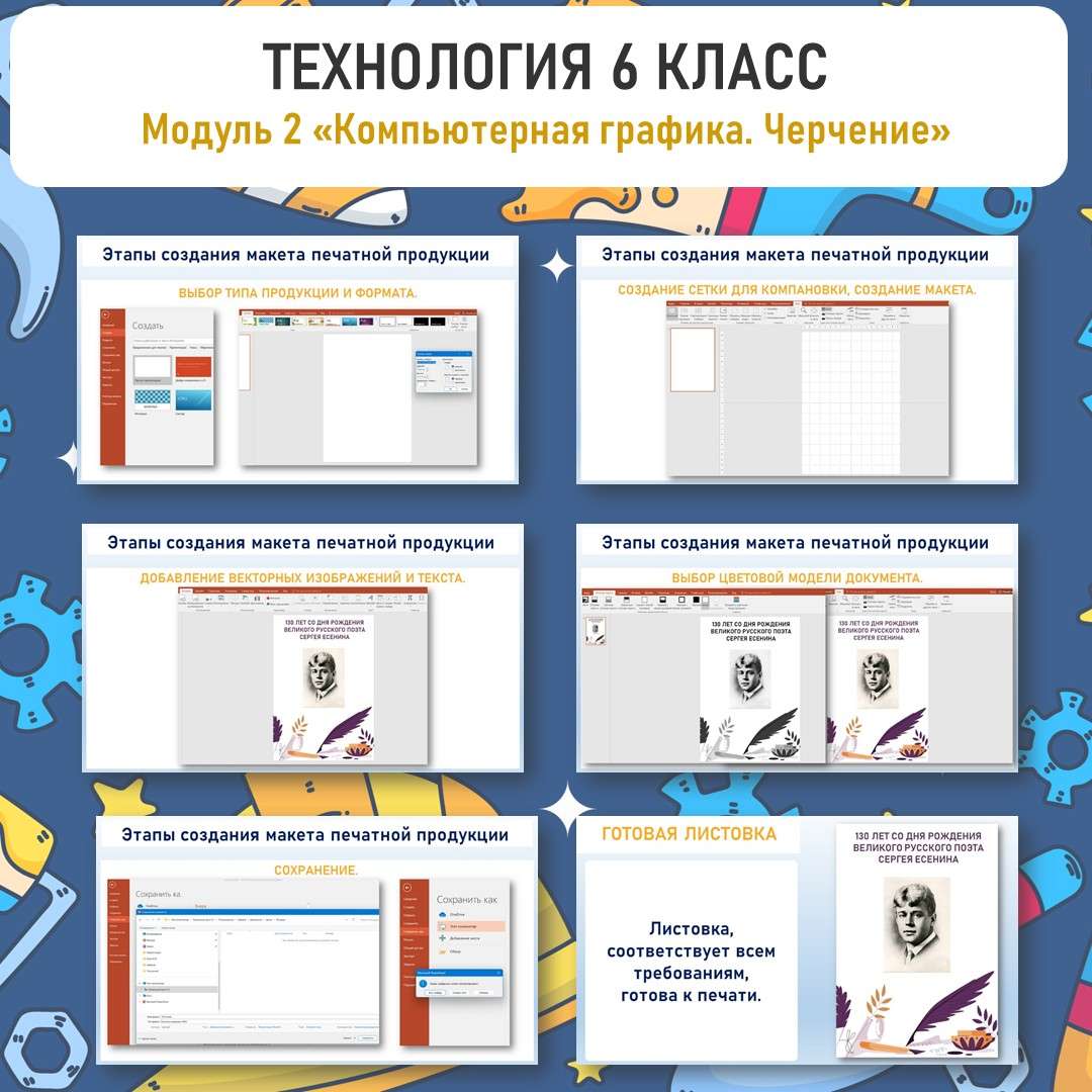 Презентация и две практические в PowerPoint. «Печатная продукция как результат компьютерной графики». Труд (технология) 6 класс. Уроки 9, 10.
