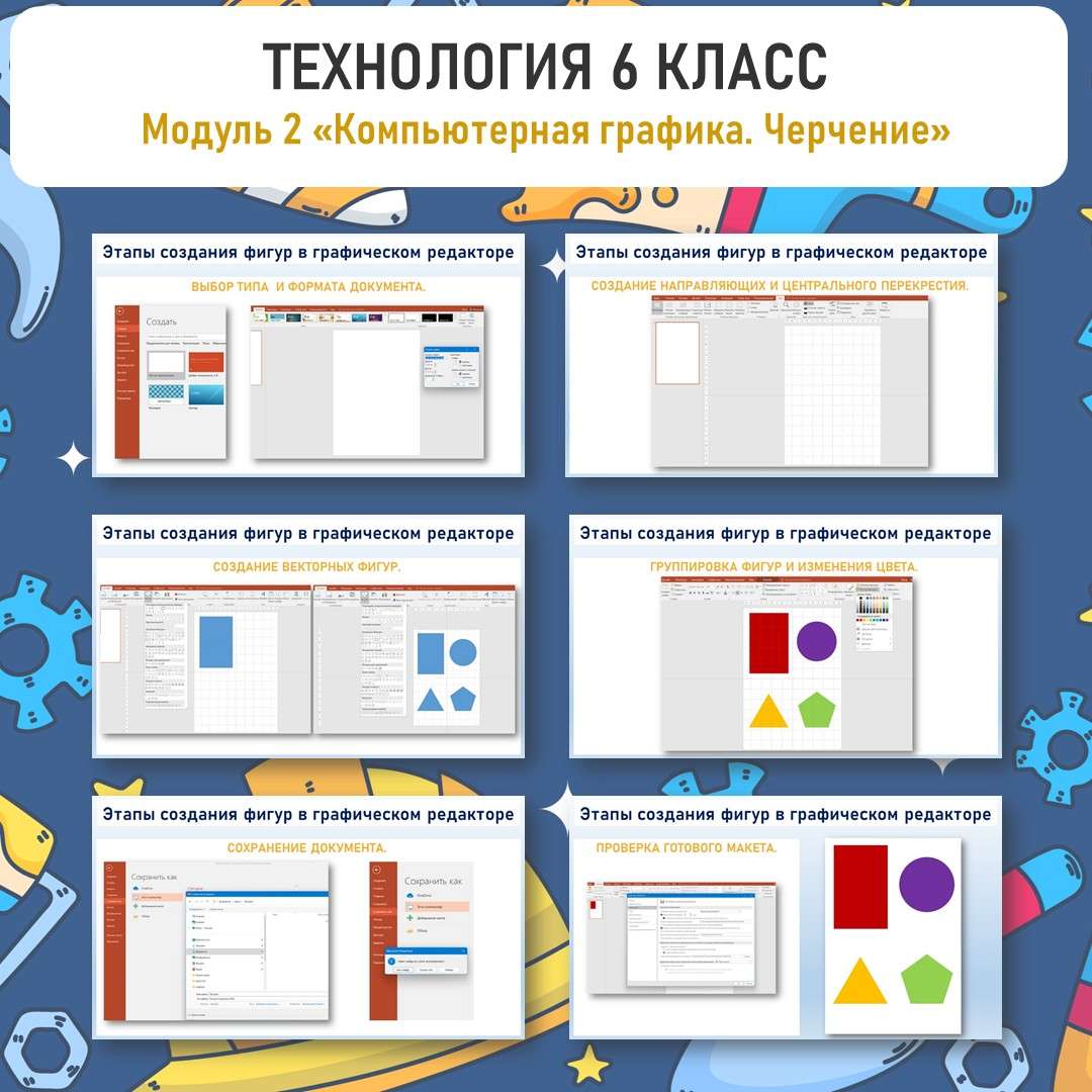Презентация «Печатная продукция как результат компьютерной графики». Практическая работа «Построение фигур в графическом редакторе». Практическая работа «Создание печатной продукции в графическом редакторе». Труд (технология) 6 класс. Урок 9, 10.
