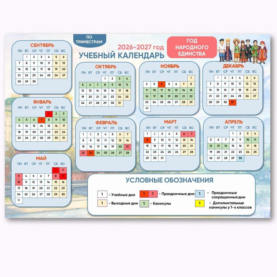 Учебный календарь 2026-2027 учебный год. Спланируйте предстоящий год заранее с нашим полным руководством. В материале представлен официальный учебный календарь на 2026-2027 год, который станет незаменимым помощником для родителей и педагогов. Мы детально разобрали структуру обучения: представлен классический учебный календарь по четвертям с точными датами каникул, а также учебный календарь по триместрам для тех, кто учится по модульной системе. Сохраните для себя важные праздничные даты, чтобы ничего не упустить в новом учебном году.
